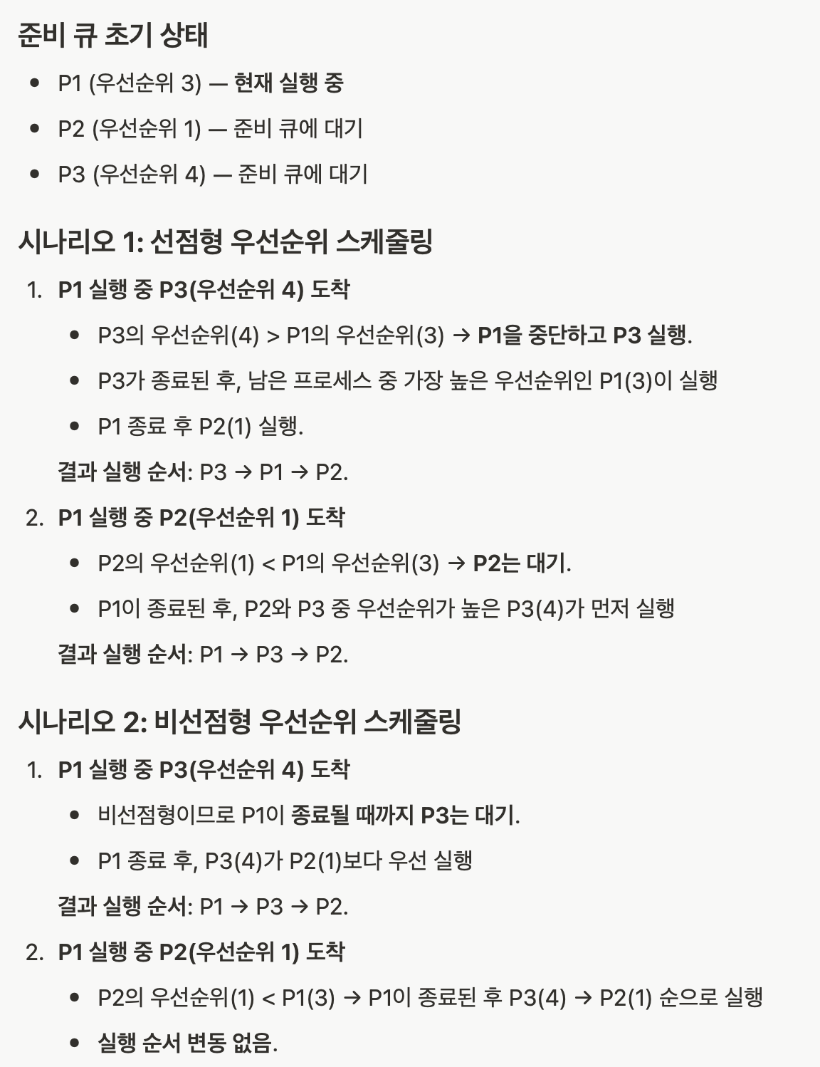 - 우선순위가 높은 프로세스에 의해서 선점 or 비선점 프로세스