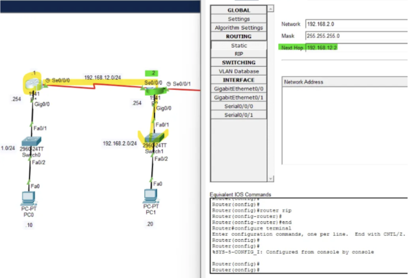 Cisco IOS에서 정적 라우팅 설정 방법은 다음과 같다.