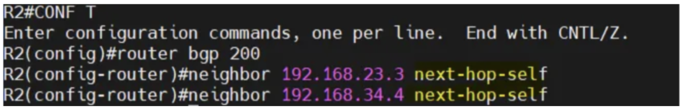 이를 해결하기 위해서 next-hop-self 옵션을 써주는 것이다.